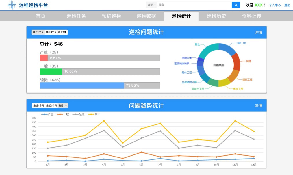 巡檢數據:巡檢任務的統計、巡檢問題的統計、問題趨勢的統計。